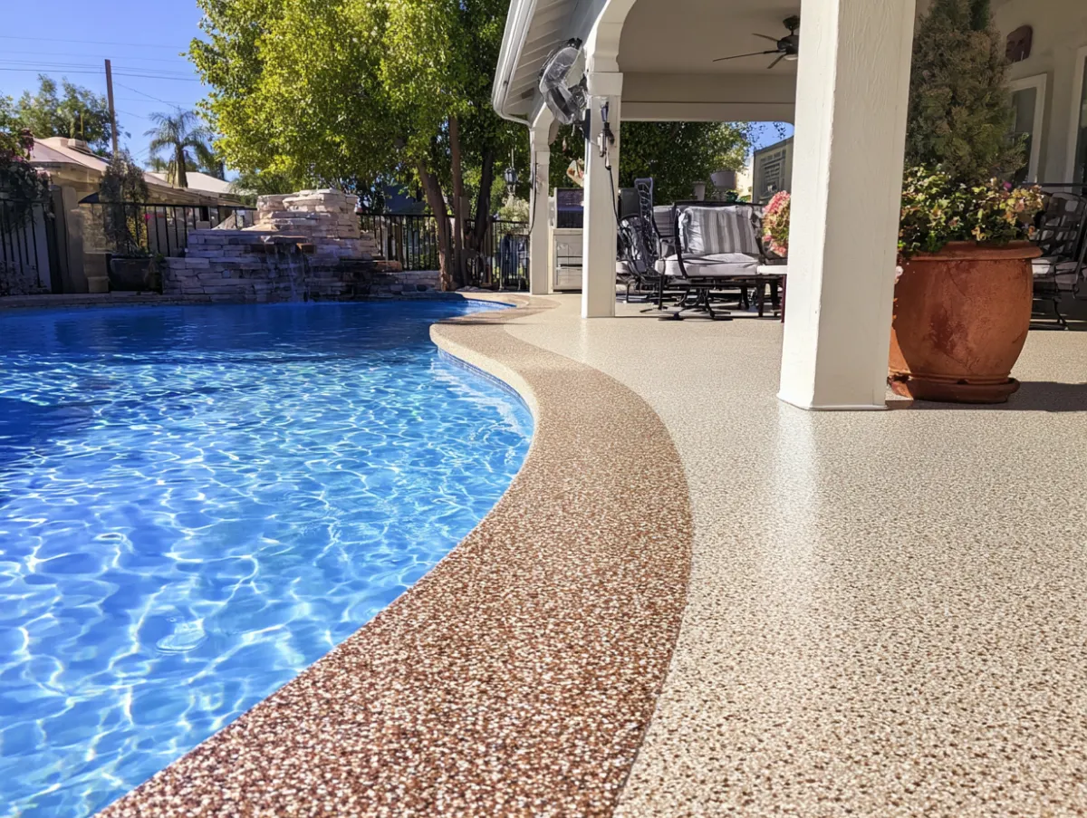 When installed properly, epoxy floors can be slip-resistant. The decorative flake system adds texture, and we tailor the finish based on where the floor is installed, such as garages, patios, or driveways, to improve traction and safety.